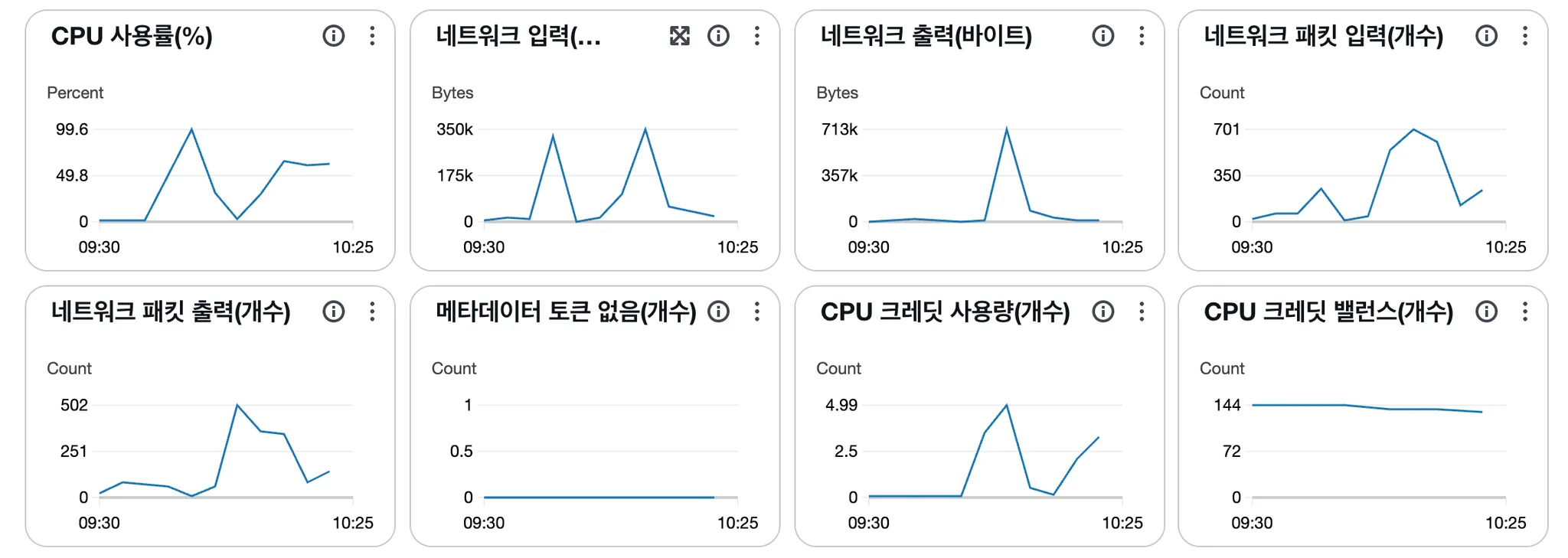 AWS EC2 모니터링 지표를 확인했다.